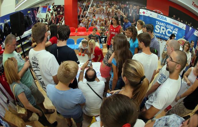 Veliki broj posetioca prodavnice Košarkaškog saveza Srbije , u Rodi, je imalo priliku da podeli radost zajedno sa kapitenom ženske košarkaške reprezentacije Milicom Dabović i njenom saigračicom iz nacionalnog tima, Tamarom Radočaj, nakon velilkih takmičenja i odlično odigranih utakmica.