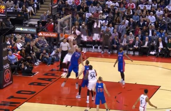 Valančunas je u pobedi Toronta protiv Detroita od 109:91 postigao 32 poena, ali je potez utakmice bio njegov prodor i zakucavanje preko 222 centimetra visokog Srbina.