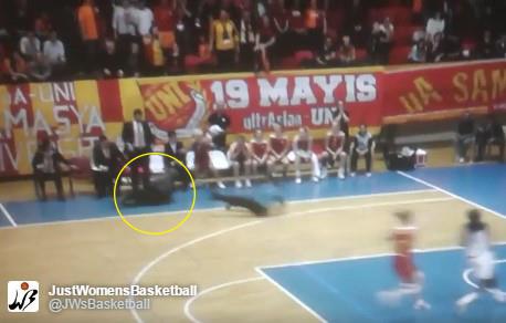 Na meču Evrokupa u kom je njena ekipa trijumfovala sa 90:75 nad Samsun Čanikom, sudija je prilikom obavljanja dužnosti uz aut liniju prevideo gde se nalazi Marina.