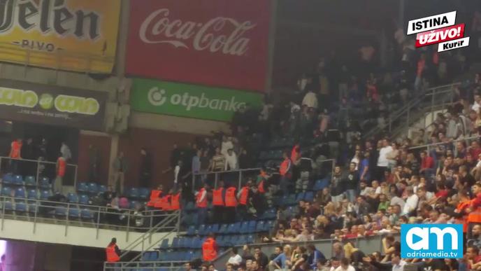 Navijači Partizana, kojih je bilo više od stotinu, pre kraja su napustili derbi meč 8. kola regionalne ABA lige sa Crvenom zvezom.