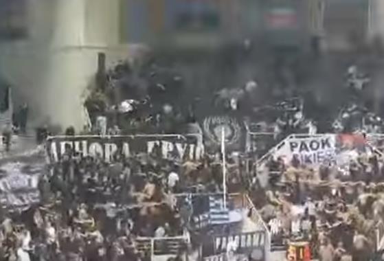 Pomešane zastave bratskih klubova, Grčke i Srbije, kao i nekoliko poruka koje svedoče o bratskim odnosima između klubova, obeležile su ovaj duel.