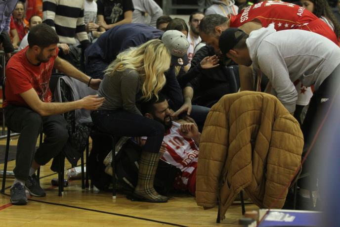 To je pokazao i u prvoj četvrtini plej-of duela protiv Budućnosti u ABA ligi, kada je u želji da stigne loptu, završio na novinarskim stolovima iza koša.