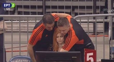 U jednom trenutku se ova devojka našla između dvojice sudija, a pojedini tviteraši su komentarisali da li su arbitri tu zbog devojke ili da bi pregledali snimak sporne situacije.