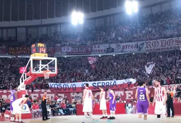 Crveno-beli iz Pireja su razvili transparent "Kosovo je Srbija" tokom utakmice Evrolige sa Realom iz Madrida.