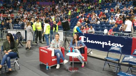 Reprezentativka Srbije u streljaštvu Ivana Maksimović - Anđušić je u dvorani "Aleksandar Nikolić" u Beogradu, gde gleda utakmicu košarkaške Evrolige između Crvene zvezde i Uniksa.