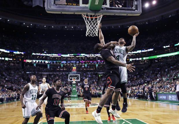 Boston je trijumfovao protiv Čikaga 105:83 u četvrtom meču prvog kola plej-ofa i serijom od 4:2 u pobedama izborio plasman u narednu rundu. U redovima ekipe iz Bostona najbolji je bio Ejveri Bredli sa 23 poena, dok je Džerald Grin ubacio 16. U poraženoj ekipi najbolji je bio Džimi Batler sa 23 poena. Ova serija je posebno bila emotivna za košarkaša Bostona Ajzeu Tomasa, kome je poginula sestra uoči prvog meča. Međutim, on je odlučio da igra sve mečeve, a bio je jedan od najboljih igrača u svom timu.