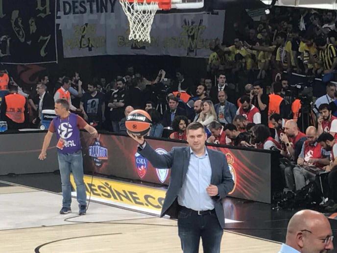 U poluvremenu utakmice Fenerbahče – Olimpijakos, juče je predsednik Košarkaškog saveza Turske Hidajet Turkoglu, jedna od najvećih legendi košarke, predao Nikodijeviću prvu loptu Final four-a na kojoj zvanično piše Beograd 2018. i kojom će se igrati finalni turnir.
