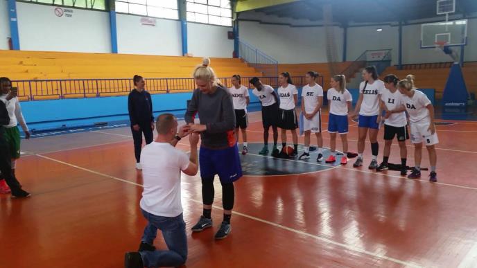(FOTO) ROMANTIČNA PROSIDBA NA TERENU: Kraljevčanin na predivan način zaprosio košarkašicu, evo šta je ona odgovorila!