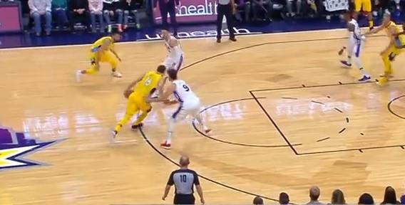 Jokić je protiv Filadelfije odigrao još jedan odličan meč. Zabeležio je 19 poena, 13 skokova i 6 asistencija, od kojih se jedna posebno izdvojila po svojoj atraktivnosti.