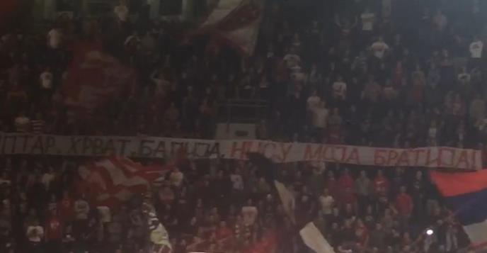 "Šiptar, Hrvat, Balija, nisu moja bratija", piše na transparentu koji su Delije razvile na početku meča Zvezde i Olimpijakosa.