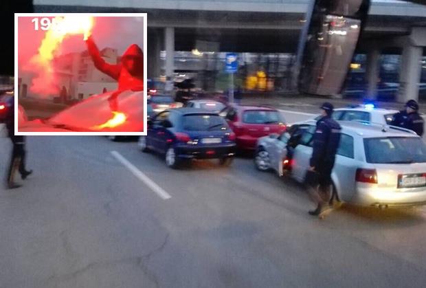 Prava filmska akcija viđena je na ulicama Beograda kada je policija zaustavila vozila u kojima su bili navijači Partizana.