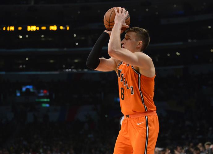 Srpski košarkaš Bogdan Bogdanović spektakularnom igrom na Ol-star meču "Zvezda u usponu" oduševio je ljubitelje košarke širom sveta, a na njegove trojke sa "druge planete" nisu ostali imuni ni američki komentatori.