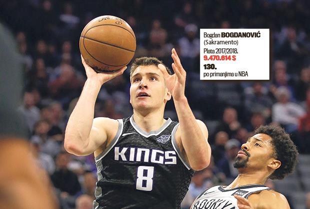 Interesantno je da je najplaćeniji ruki Bogdan Bogdanović, koji je sa Sakramento Kingsima potpisao ugovor vredan 27 miliona dolara, što ga je učinilo najskupljim novajlijom u istoriji najjače košarkaške lige na svetu. Bogdanova plata ove sezone iznosi 9,4 miliona dolara, što ga čini tek 130. igračem NBA lige. Poređenja radi, najveća primanja ima Stef Kari - 34.682.500 dolara.