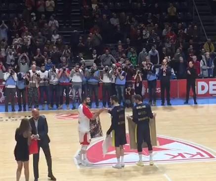 Njima su pred međusobnu utakmicu u Evroligi uramljene dresove Zvezde i plakete uručili kapiten ekipe Branko Lazić i tim menadžer i sportski direktor Nebojša Ilić.