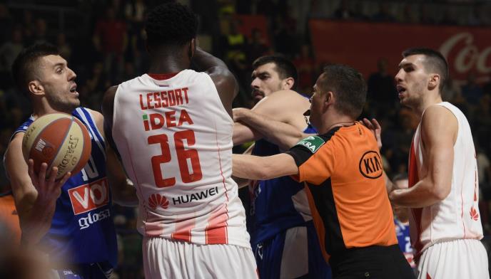 Košarkaši Crvene zvezde savladali su Budućnosti 69:59 u drugom meču finalna regionalne košarkaške ABA lige, čime su izjednačili rezultat u seriji na 1:1, a posle meča je u tunelu došlo do sukoba.
