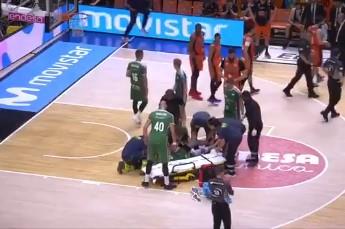 U derbiju španske ACB lige između Valensije i Unikahe (74:73) košarka je ostala u drugom planu, nakon izuzetno dramatične scene koja se odvijala na terenu u finišu utakmice.