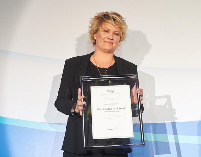 Selektor ženske košarkaške reprezentacije Srbije Marina Maljković dobila je večeras u Skupštini grada Beograda plaketu Međunarodnog olimpijskog komiteta (MOK) za izuzetan doprinos u razvoju ženskog sporta kroz projekte "Pokret za žensku košarku" i "Besplatna škola košarke za devojčice osnovno - školskog uzrasta".