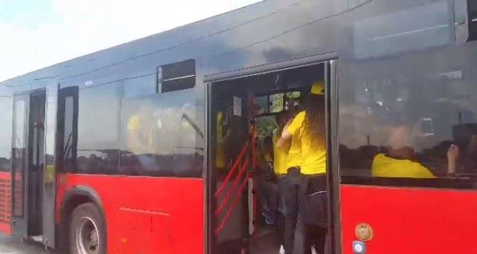 I "žuti" i "zeleni" su punili autobuse kako bi se prevezli do poprišta polufinalne borbe.