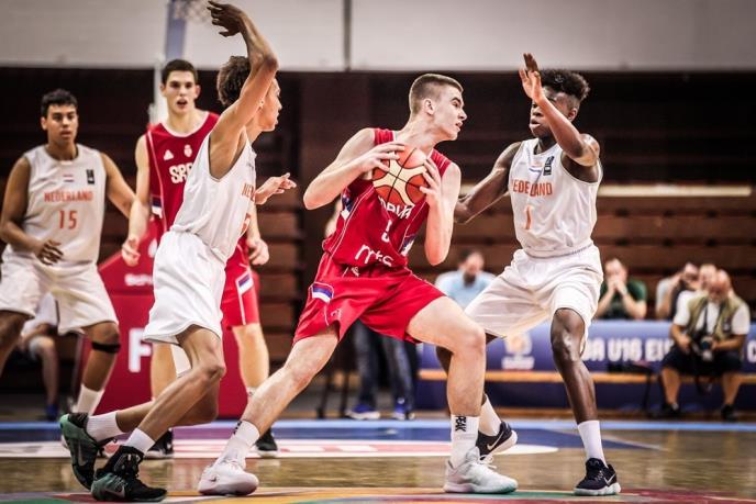 Posle početnog ispistivanja snaga i rezultata 4:4, reprerezentativci Srbije su preuzeli inicijativu i preko Nikole Nanojlovića i Filipa Škobalja napravili seriju 11:2 za vođstvo 15:6. Holanđani su uspeli da uspostave ravnotežu i do kraja prve četvrtine ne dozvole našem timu da se još više rezultatski odvoji – 20:13. Nekoliko presečenih lopti i brzih kontri doneli su srpskim kadetima dvocifrenu prednost u 15. minutu posle trojke Vojina Ivkovića – 31:17. Mudro su izabranici selektora Vukoičića koristili činjenicu da je rival u bonusu i uglavnom sa linije slobodnih vacanja već do poluvremena stekli kapitalno vođstvo – 44:22.