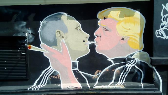 Trenutno najveća turistička atrakcija, koja fizički nije deo Užupisa - mada se idejom savršeno uklapa u njega, jeste grafit Donalda Trampa i Vladimira Putina na zidinama jednog lokalnog restorana. Mural dvojice litvanskih "street art" umetnika pod nazivom "Make Everything Great Again" na kome se predsednici Rusije i SAD ljube osvanuo je 2016. godine, ali je u međuvremenu nekoliko puta menjan i dorađivan i trenutno najmoćniji ljudi sveta na njemu dele džoint. I murali prate modu, izgleda!