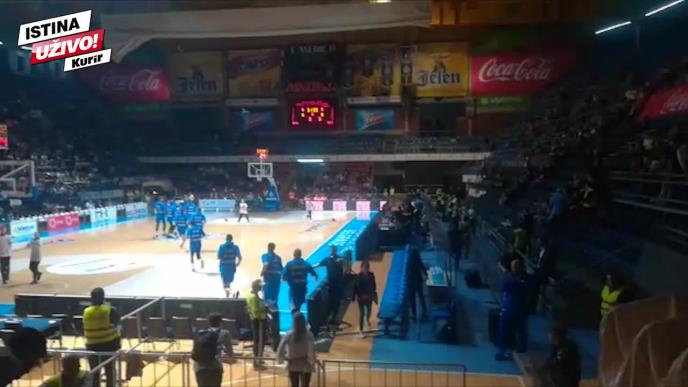 Kada su gosti istrčali na parket na zagrevanje, kapacitet tribina je bio tek do pola ispunjen, ali su se glasno zaorile uvrede na račun Simonovića.
