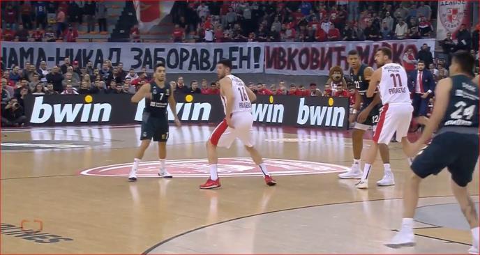 Na tribinama dvorane "Mira i prijateljstva" u Pireju vijori se i zastava Crvene zvezde.
