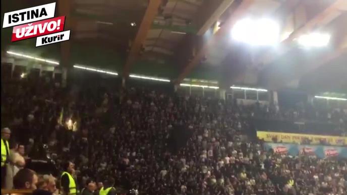 Košarkaši Partizana i Zvezde igraju derbi ABA lige u Pioniru, a sjajnu atmosferu prave navijači Partiazan.