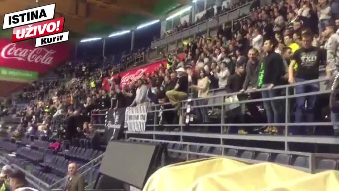 IZLAZAK IGRAČA OBE EKIPE NA PARKET PIONIRA: Aplauz Grobara za crno-bele, zvižduci za Štimca i Turke (KURIR TV)