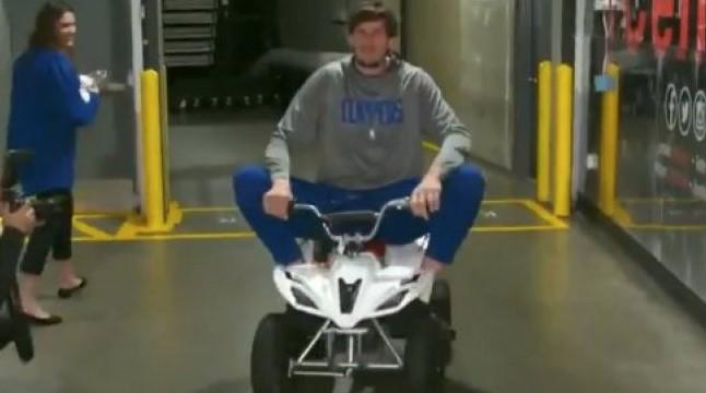 Lepo raspoložen i nasmejan, Boban se vozao "kvadom" hodnicima dvorane i sa 222 centimetara visine, izazvao brojne reakcije fanova na društvenim mrežama.