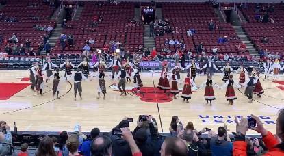 Pred start NBA meča između Čikago Bulsa i Milvoki Baksa folklorna grupa "SOKO" priredila je pravi spektakl na parketu dvorane "Junajted centar".