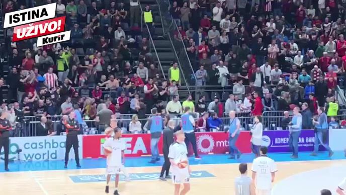 Izlazak oba tima na parket dvorane Aleksandar Nikolić, navijači Crvene zvezde, koji su u većini pozdravili su na različite načine.