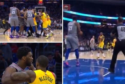 Bledso i Embid su imali žestok duel ispod koša, a nakon što je centar File dodao loptu beku Baksa, igrač gostiju je izgubio živce i gađao ga.