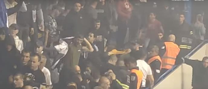 Koreografija koja je podrazumevala pirotehniku nije se svidela sudijama, koji su prekinuli susret i naložili da se isprazni istočna tribina.