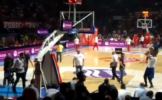 Nekoliko navijača Crvene zvezde sišlo je na parket i priključilo se zagrevanju košarkaša Budućnosti.