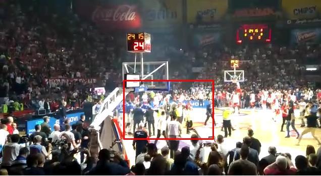 "Delije" su jurnule ka košarkašima Budućnosti da se fizički obračunaju sa njima.