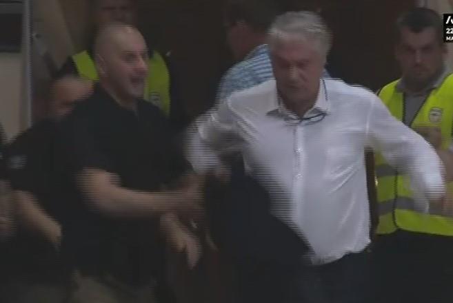 Tada je Mitrović odgurnuo pripadnike obezbeđenja, odbio da napusti halu i želeo da se obračuna sa navijačima Partizana.