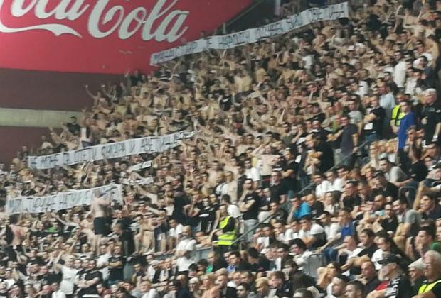 "Grobari" su na četvrtoj utakmici finala protiv Crvene zvezde razvili transparent na kome piše: