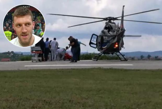 "Kuzmić je u direktnom sudaru polomio donju i gornju vilicu i trenutno je u komi. Po rečima doktora Vlade Đajića nema hematoma na mozgu, ali su povrede vrlo ozbiljne i zahtevaju transport košarkaša u Urgentni centar u Beograd", rekao je doktor.