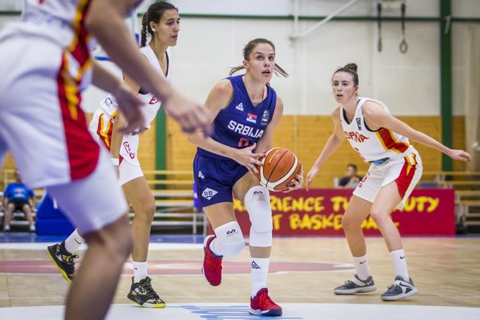 Reprezentacija Španije nametnula je svoj ritam od samog starta i već u sedmom minutu došla dvocifrenog vođstva 15:5, koje je zadržala i do kraja prve četvrtine – 23:11. U nastavku duela srpske reprezentativke su uspele da uspostave ravnotežu i boljom odbranom donekle zaustave atake rivalki. Ipak, posle prvog poluvremena naš mladi tim je i dalje bio u priličnom zaostatku – 38:22.
