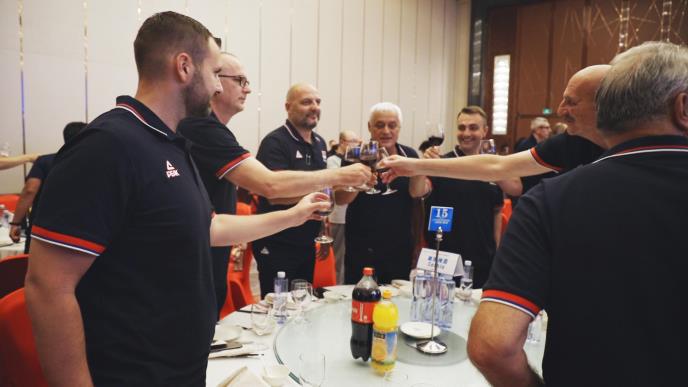 ORLOVI SA TRENINGA NA SVEČANU VEČERU: Bogat program naših košarkaša u Kini! Nazdravili za pohod na medalju (FOTO)