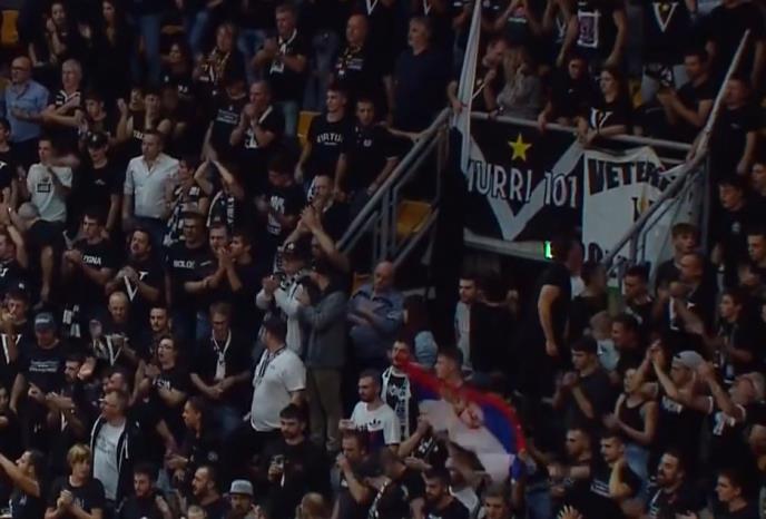 Na tribinama dvorane "Paladoza" sve vreme se vijorila srpska trobojka.