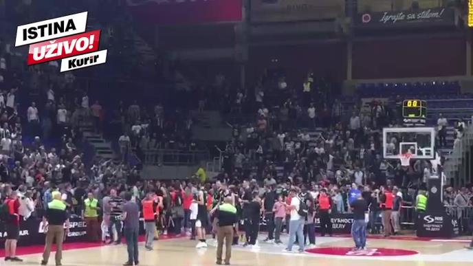 Grobari su napunili dvoranu do poslednjeg mesta, a opšti haos je nastao po završetku kada je sudija pokazao da je meč završen.