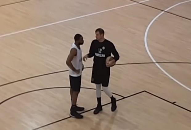 Kapiten crno-belih Novica Veličković, tokom treninga u maloj sali "Arene" je popričao sa novopridošlicom i uputio ga u neke detalje.