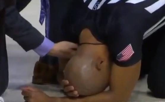 Kokburn je postigao koš, a kada je počeo da ga slavi, slučajno je Garisona udario u glavu.