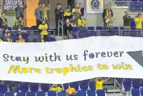 - Novi ugovor za Željka - grmelo je iz grla navijača turskog velikana. Prvi čovek kluba sve to je pozdravio aplauzom. Na tribinama je bila istaknuta velika zastava sa Obradovićevim likom i porukom da ostanu zajedno zauvek i osvoje još mnogo trofeja.