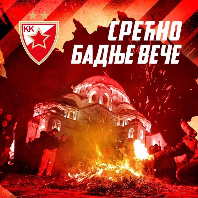Košarkaški klub Crvena zvezda čestitao je svim navijačima, ljubiteljima košarke, i svim vernicima Badnje veče i najveći i najradosniji praznik Božić.