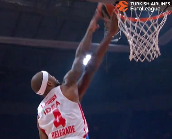 Delovalo je da će centar Albe Noko lako položiti loptu u koš ali tako nije mislio znatno niži Lorenco Braun koji se stvorio niotkuda i uspeo je da ga izblokira na samom obruču.