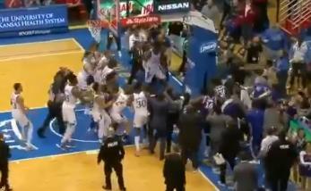 Jedna od najbrutalnijih tučnjava u američkoj univerzitetskoj košarkaškoj NCAA ligi viđena je u duelu Kanzasa i Kanzas Stejta.