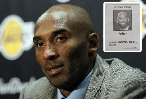Tragična smrt jednog od najboljih košarkaša u istoriji NBA Kobija Brajanta potresla je svet, a u srpskoj štampi osvanula je čitulja posvećena njemu.