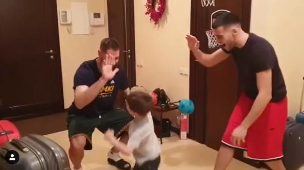 Bivši plej Crvene zvezde koji sada nastupa za Himki je u društvu bivšeg saigrača, pleja Jeniseja Nikole Rebića i sina Vuka (4) šutirao na dečiji koš u stanu.